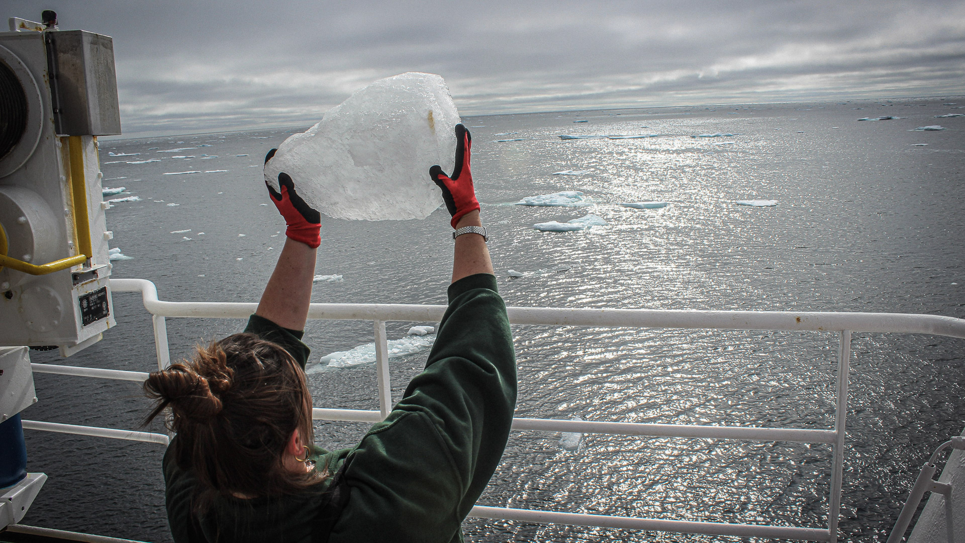 Two weeks later, toward the end of the voyage, the morning of the ice-hunt delivered the crew its most interesting challenge yet. In fact, it had emerged in conversation in the previous days. We could sail around the ice, sure, and we could sample water and sediment alike. But what about the ice itself?