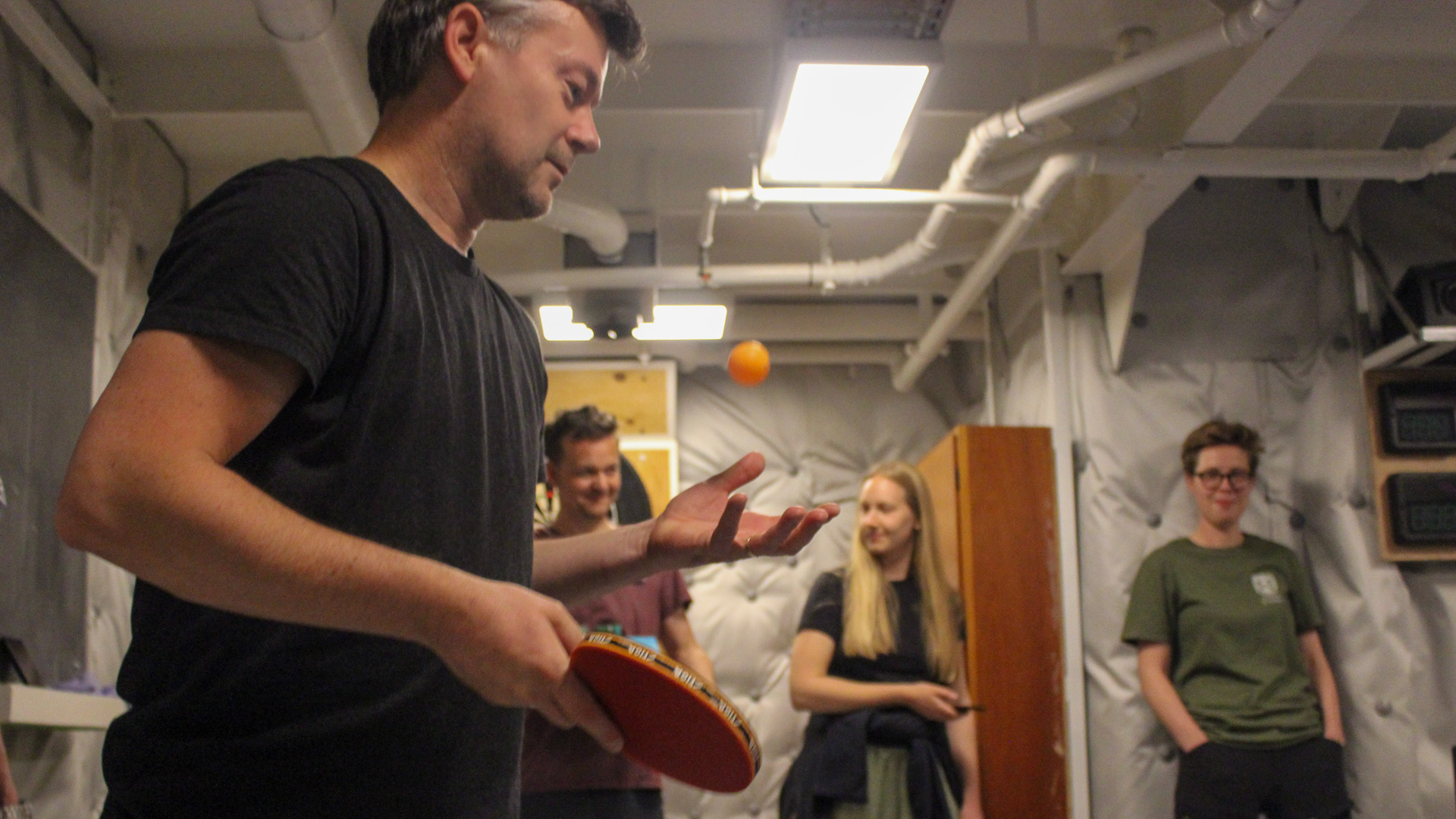 The ship became a universe unto itself. At any given noon-bright hour, I could wake up to a lively world of both industry and play, with scientists peering into scopes, crew charging upstairs barking Danish into walkie-talkies, rowdy card games below deck and binocular-lifting birders standing silent sentinel on the bridge. Downstairs in the small gym, next to the engine room, the whole ship had a running table tennis tournament—a particularly comical sport on rough water. (The gym’s walls were padded for safety. Using the floor-bolted treadmill meant hanging on for dear life.) Still, there was a comforting sense of community: The whole of the ship felt like a five-story working collective.