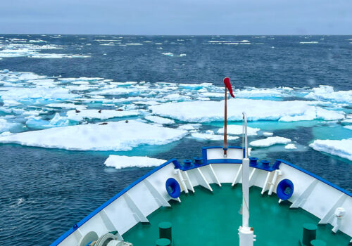 With every answer—usually supplied with one eye on more important tasks—I increasingly felt my extraordinary luck to be at sea with two sets of experts, scientists and sailors. Witnessing their easy cooperation, I thought about how deeply that particular relationship is historically entrenched. Anyone who attempted a sea-crossing before the era of GPS was an early oceanographer, an astute wave-reader. And as long as scientists have been studying the Arctic, they’ve relied on the sure science of seafaring to get them there.