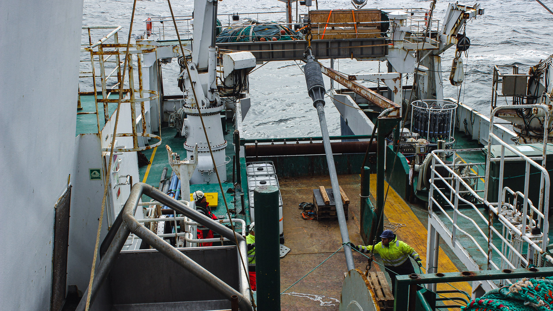 The mutual respect was evident as the crew solved daily dramas with extraordinary ingenuity. On day three, the geosciences team realized that the cables onboard weren’t long enough for their “gravity core” to sample sediment at the aimed 3,000 meters below the surface. That could be an extremely expensive mistake. Out here, and so far north, there’s no calling in any replacements for the six-meter-long coring instrument, for which Aarhus University had likely shelled out thousands.