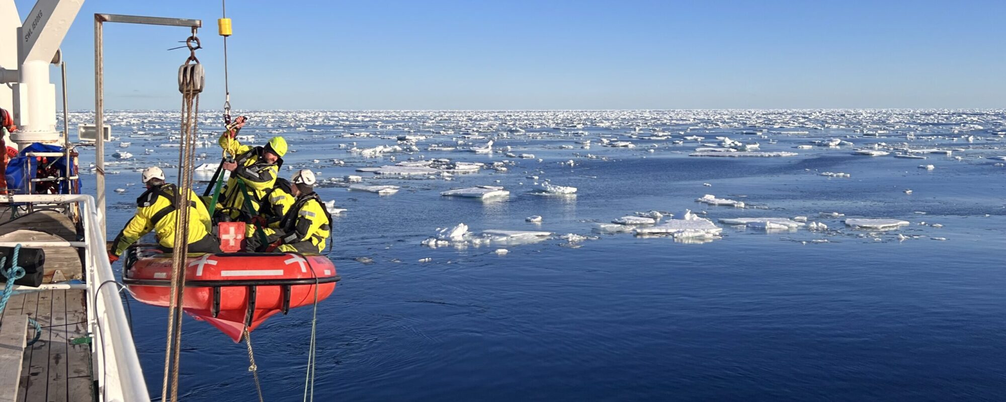 This was Jörg Dutz, a German biological oceanographer. Slight and gray-haired with round black spectacles, he looked out of place among his younger and burlier boat companions. All were crew aboard the Danish research ship Dana, which sat anchored just a few dozen meters from the ice edge.