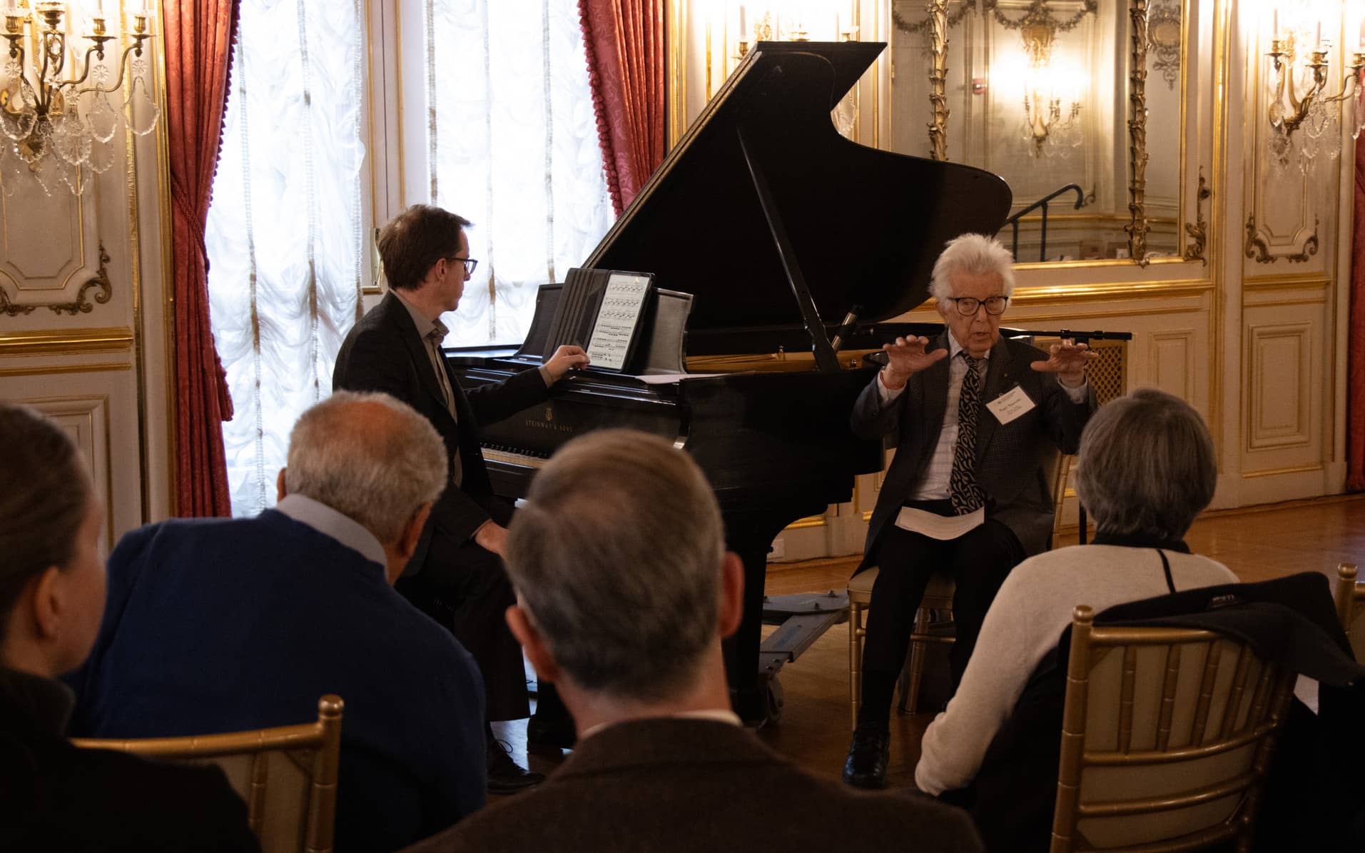 Fellows discuss and reminisce during a day of talks at the House of Sweden in Washington.